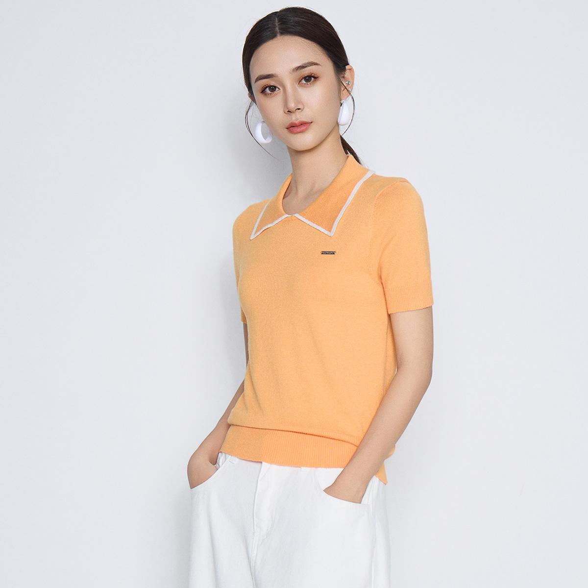 纯色翻领短袖 女装 针织衫 上衣气质时尚 拼色小衫 马天奴2025春夏新款