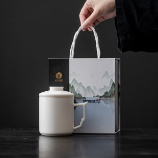 素烧羊脂玉茶杯陶瓷茶水分离杯办公室带盖过滤泡茶马克杯礼盒装