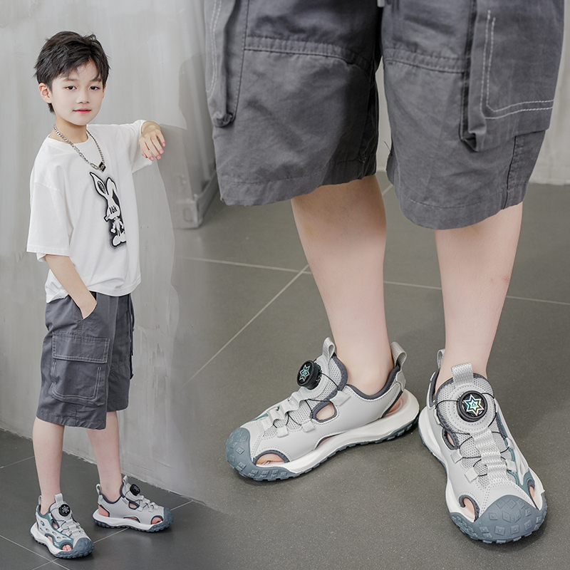 旋转纽扣男孩软底防滑运动沙滩鞋 男童鞋 夏季 2024新款 儿童包头凉鞋