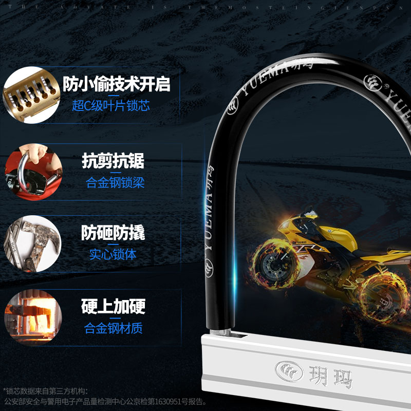 玥玛摩托车自行车锁U型防盗锁电动车锁电瓶车单车山地车U形锁防剪