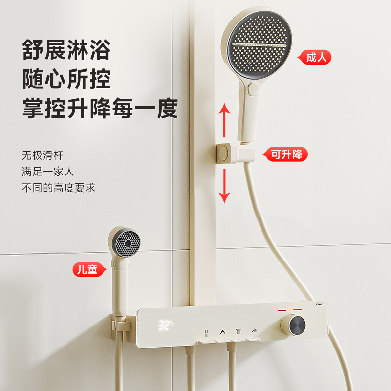 浪鲸淋浴花洒套装 熊猫系列儿童花洒冷热数显钢琴按键亲子花洒051