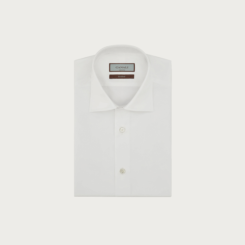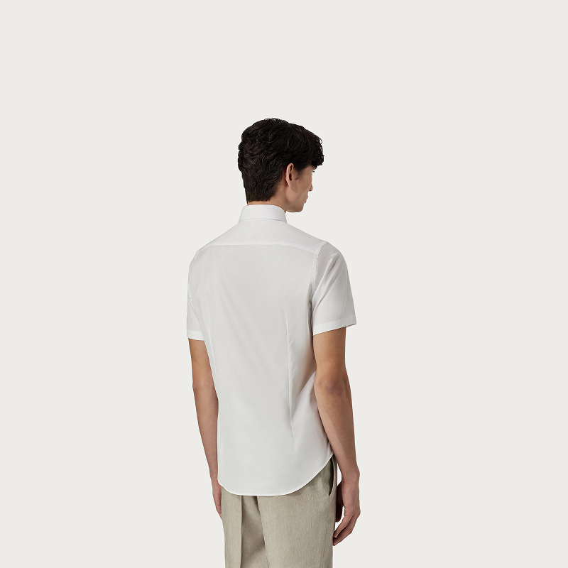 衬衫 CANALI康纳利白色海岛棉修身 短袖 型男士 版