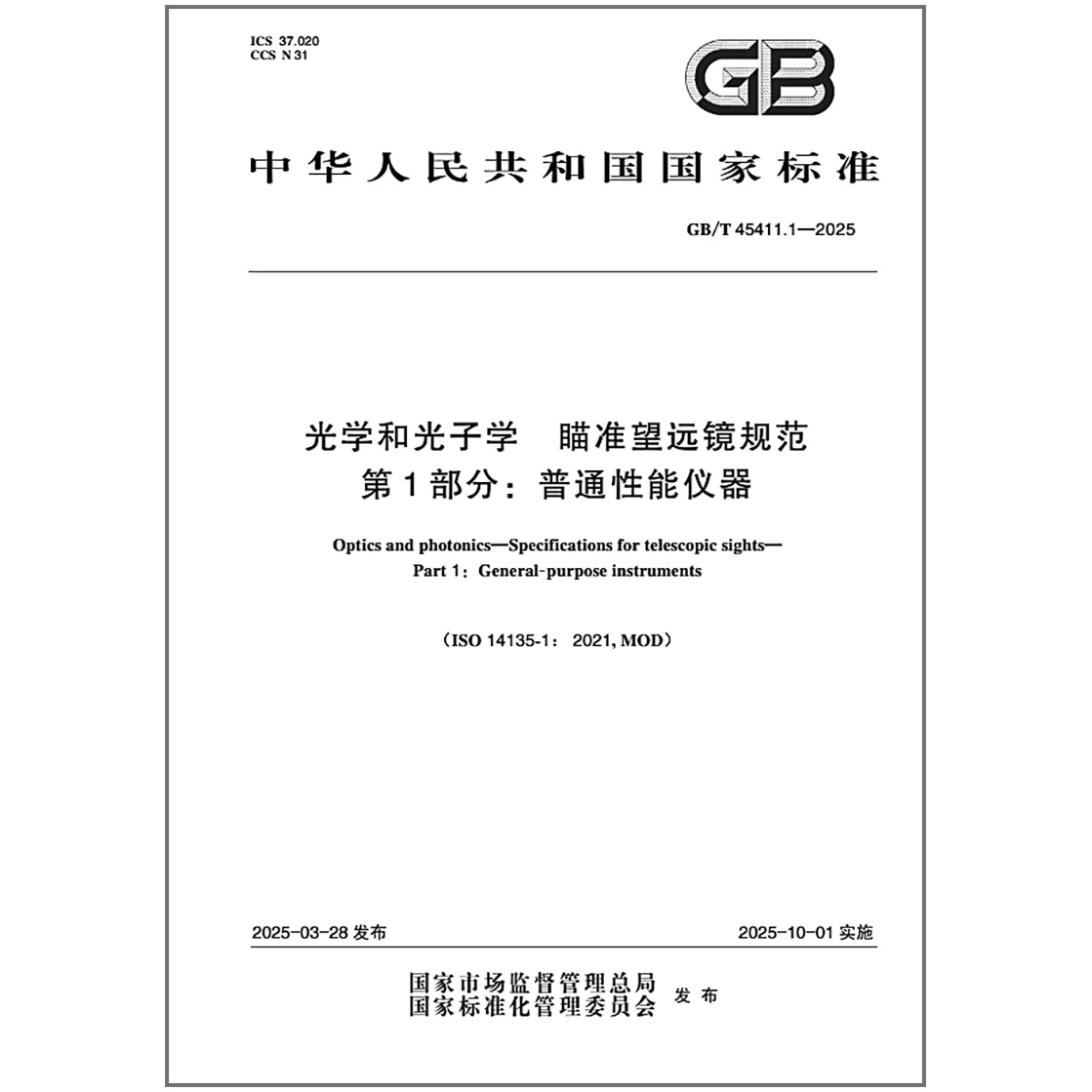 光学和光子学 部分:普通性能仪器 第 瞄准望远镜规范 2025 45411.1 纸质图书