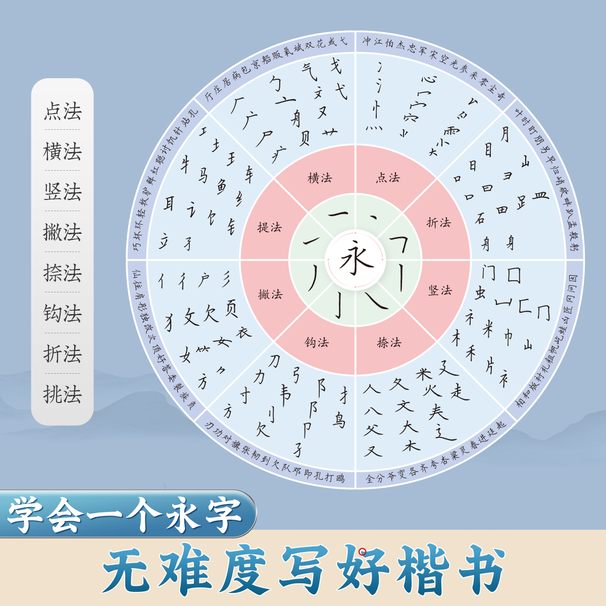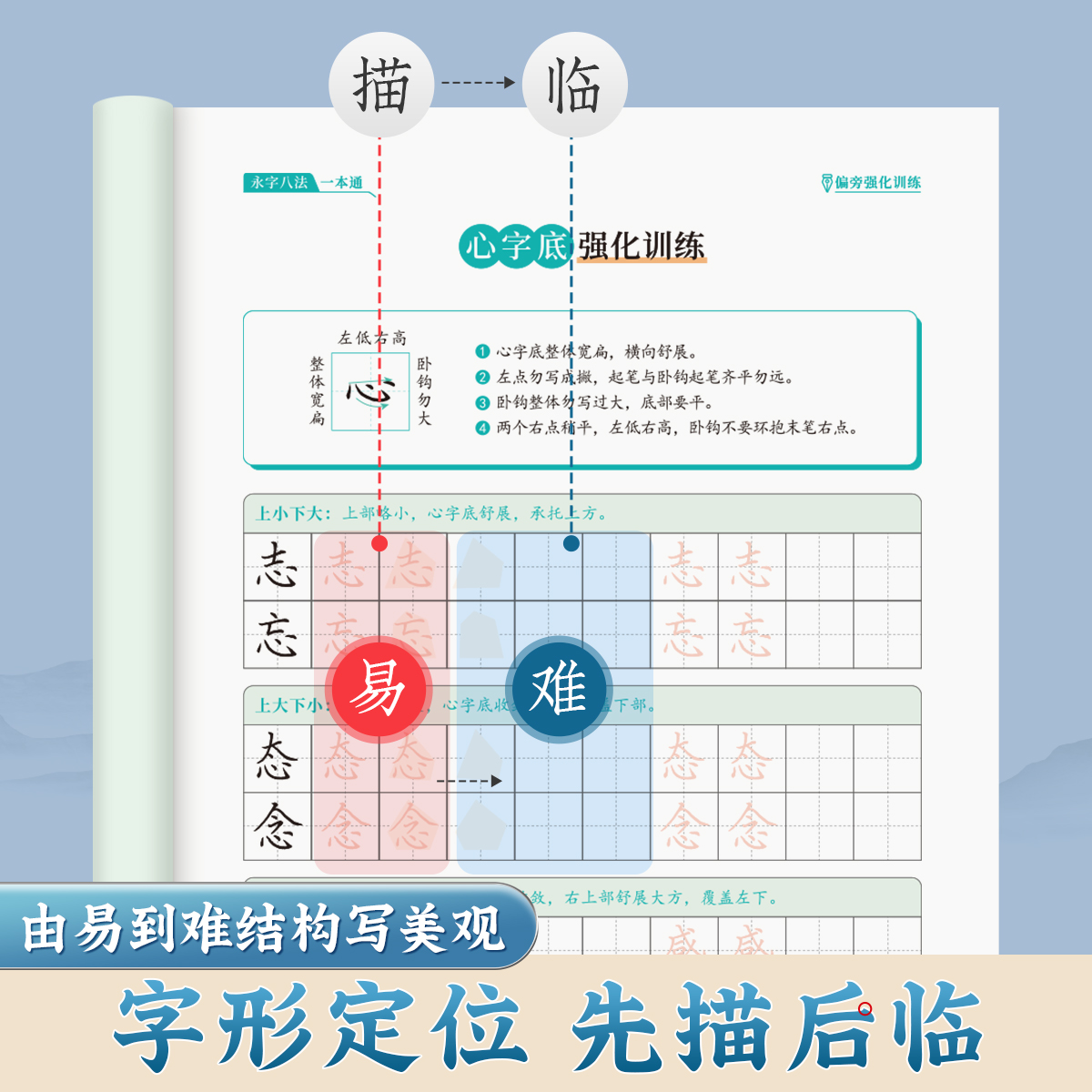 偏旁部首 永字八法 楷书正楷字帖成人练字初中生高中生楷体临摹钢笔成年人技法初级练习练字帖成人单字专用描红本讲解 硬笔 六品堂