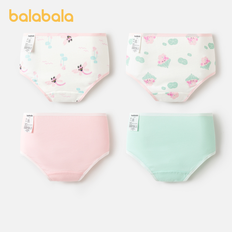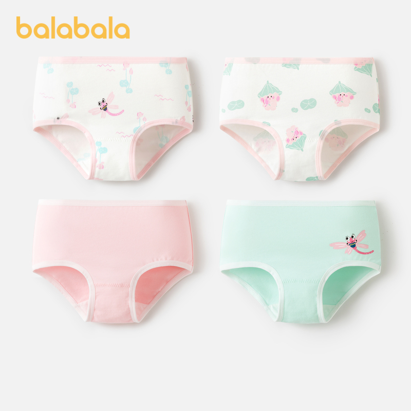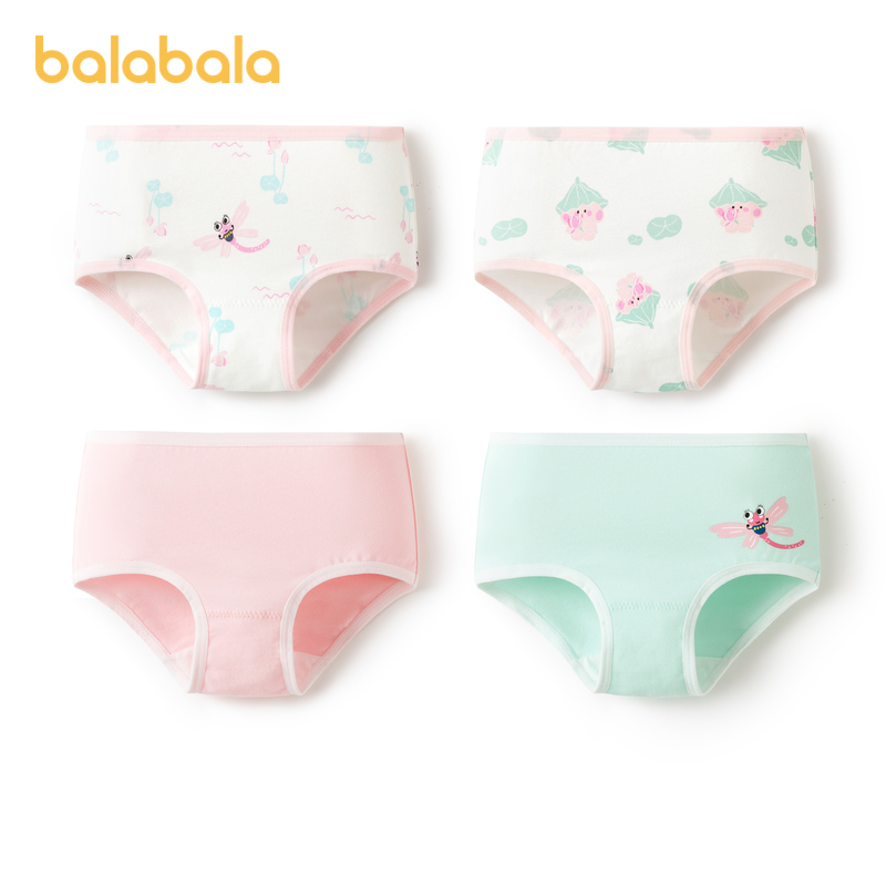 小童宝宝不夹PP亲肤萌四条装 巴拉巴拉女童内裤 棉平角儿童三角短裤