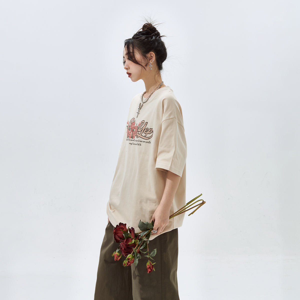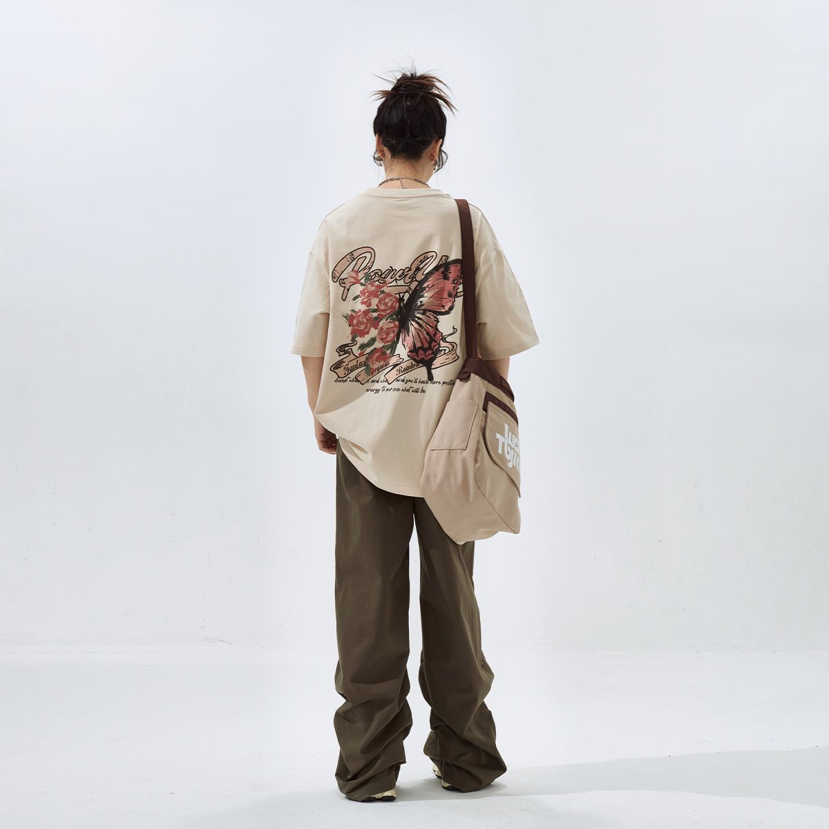 宽松美式 YEP复古蝴蝶印花短袖 国潮情侣装 2025年新款 上衣 t恤女夏季