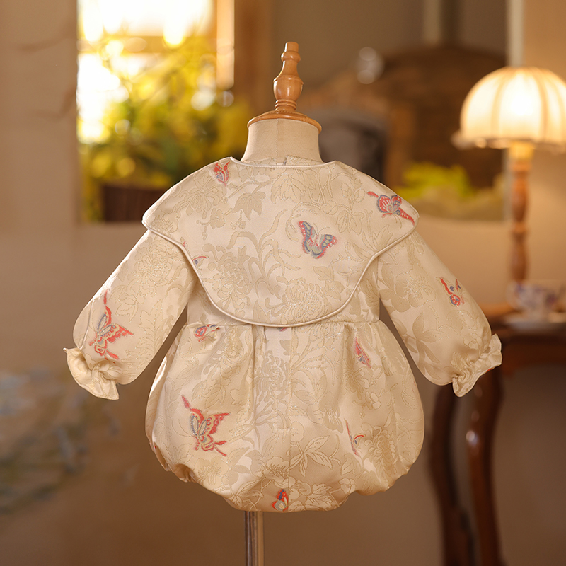 中式 女宝百天一岁生日抓周包屁衣千金风春 周岁礼服女宝宝2025新款