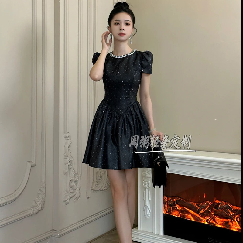 罗衣名媛贵气小香风收腰连衣裙女冬正式 裙子09926 场合精致中长款