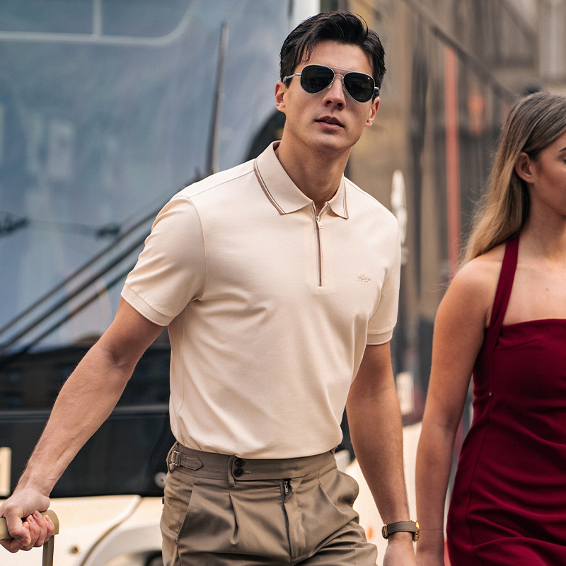 t恤AT16021断码 MrBu布先生立体印花拉链翻领短袖 2025春夏凉感男士