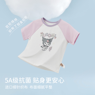 库洛米联名戴维贝拉女童短袖 T恤纯棉抗菌儿童上衣女宝宝夏装