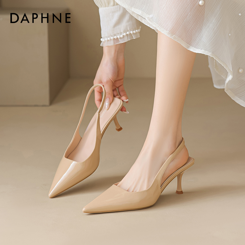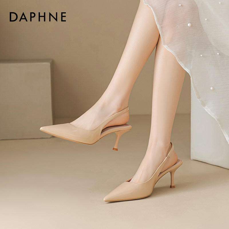 黑色细跟凉鞋 达芙妮裸色高跟鞋 外穿尖头浅口单鞋 夏季 爆 女2025新款