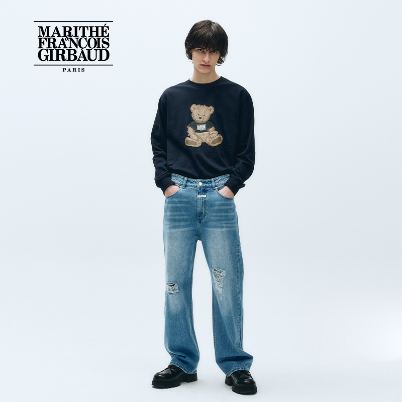 可爱复古涂鸦熊 MARITHE长袖 情侣装 潮流男女同款 2025年秋韩系 T恤