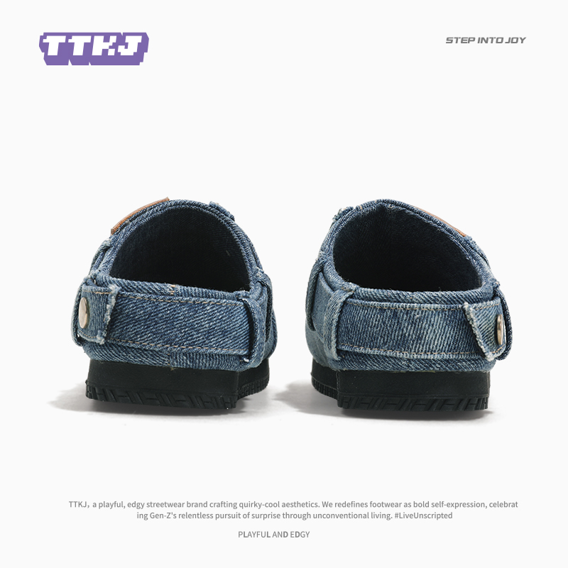 包头拖鞋 增高厚底勃肯鞋 子 女外穿小众设计个性 TTKJ蓝色牛仔布拖鞋