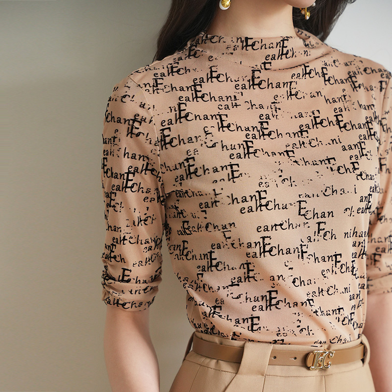针织上衣女eahchanie 港风复古T恤半高领老花短袖 奕辰2025夏季 新款