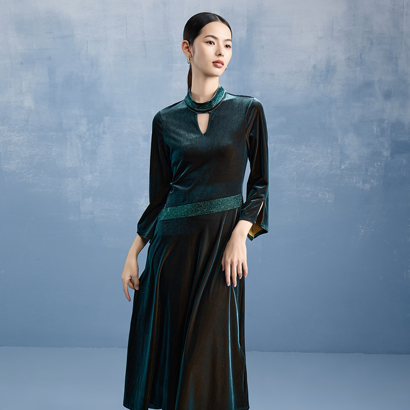 气质大码 红色提花显瘦旗袍微胖新中式 东方美学 连衣裙 babes
