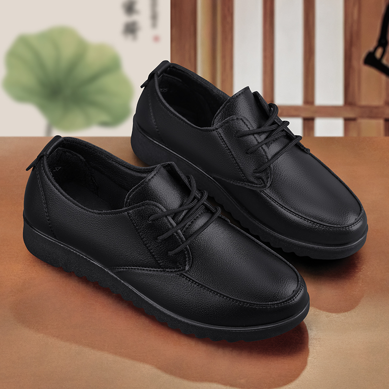 妈妈鞋 上班皮鞋 女黑色厨房防滑软底不累脚老北京布鞋 肯德基工作鞋