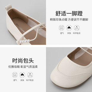 潮休闲浅口平底银色鞋 豆豆屋厚底玛丽珍鞋 韩版 透气2024新款 女夏季