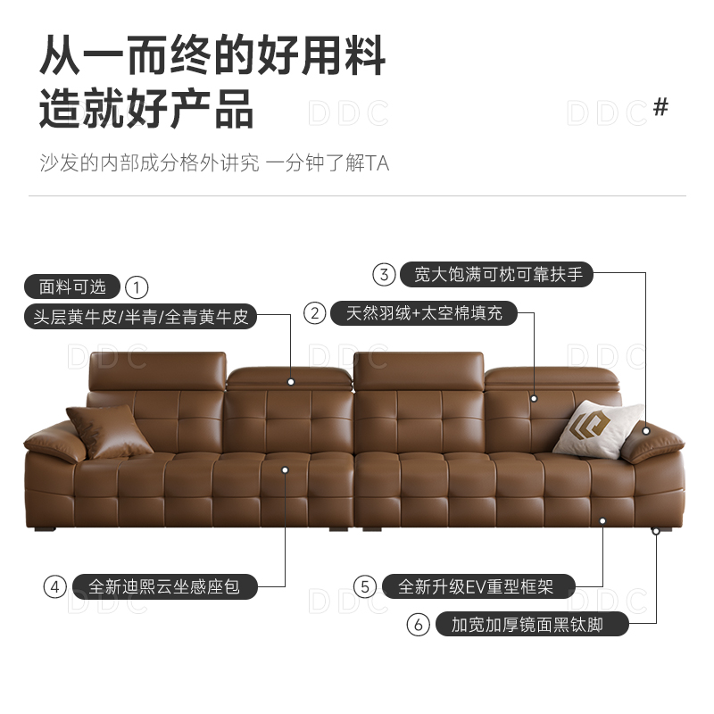 政府补贴DDC意式 极简劳伦斯真皮沙发客厅直排头层牛皮沙发新款
