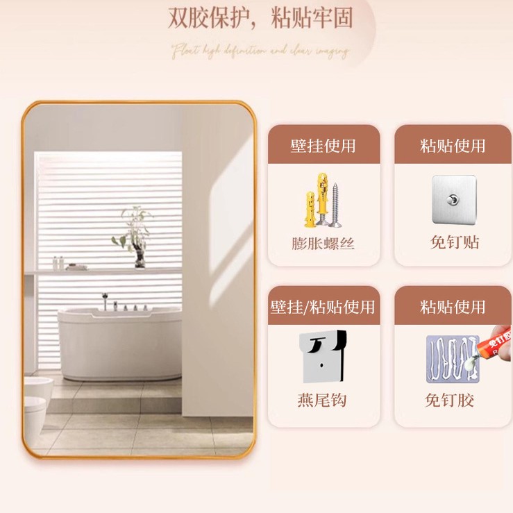 梳妆镜挂墙式 免打孔玻璃镜子贴墙自粘洗手台浴室镜桌面壁挂化妆镜