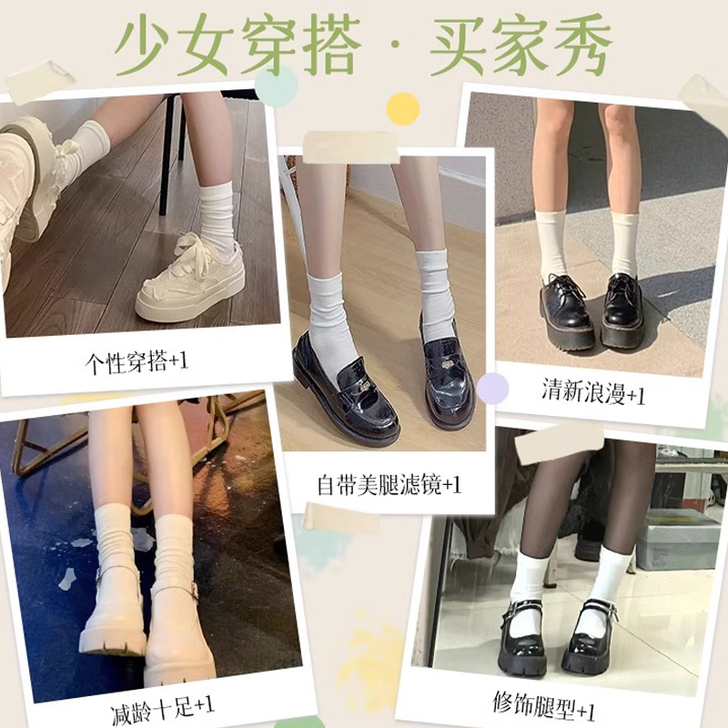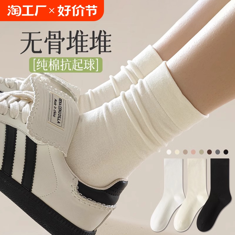 白色无骨长袜纯棉防臭月子袜中筒黑色 堆堆袜小皮鞋 袜子女夏季 薄款