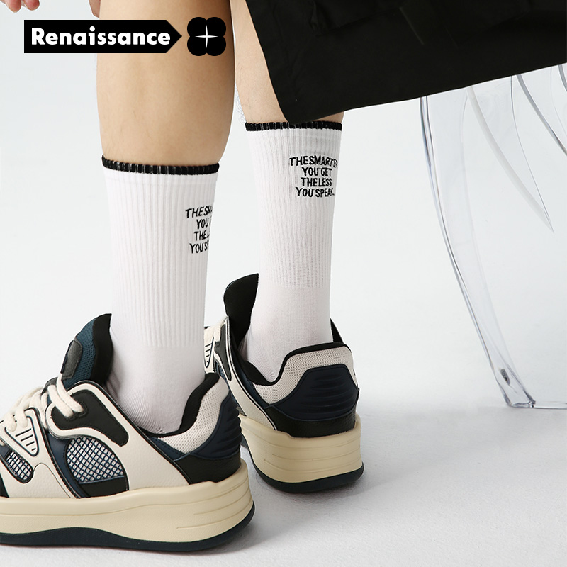 R文艺复兴原创男袜秋季 中筒袜精梳棉篮球袜百搭运动袜ins潮袜 新款