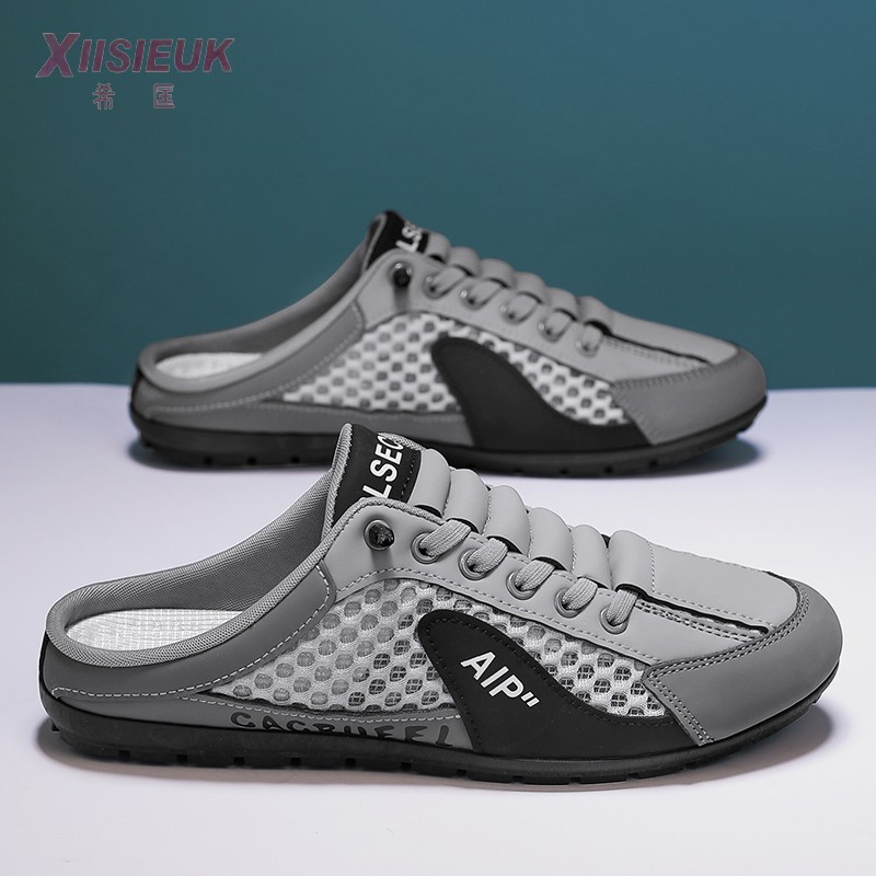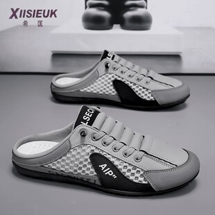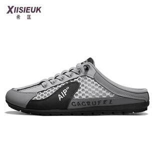 拖鞋 网面一脚蹬懒人无跟豆豆夏天板鞋 透气男士 懒人fashion半拖鞋