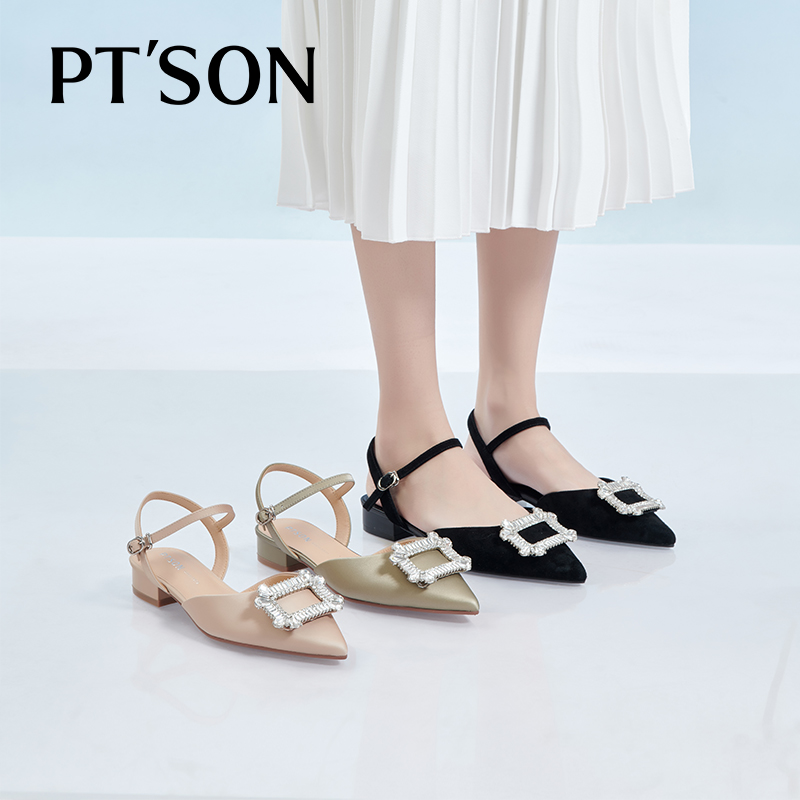 牛皮尖头低跟时尚 百田森水钻包头凉鞋 女春夏新款