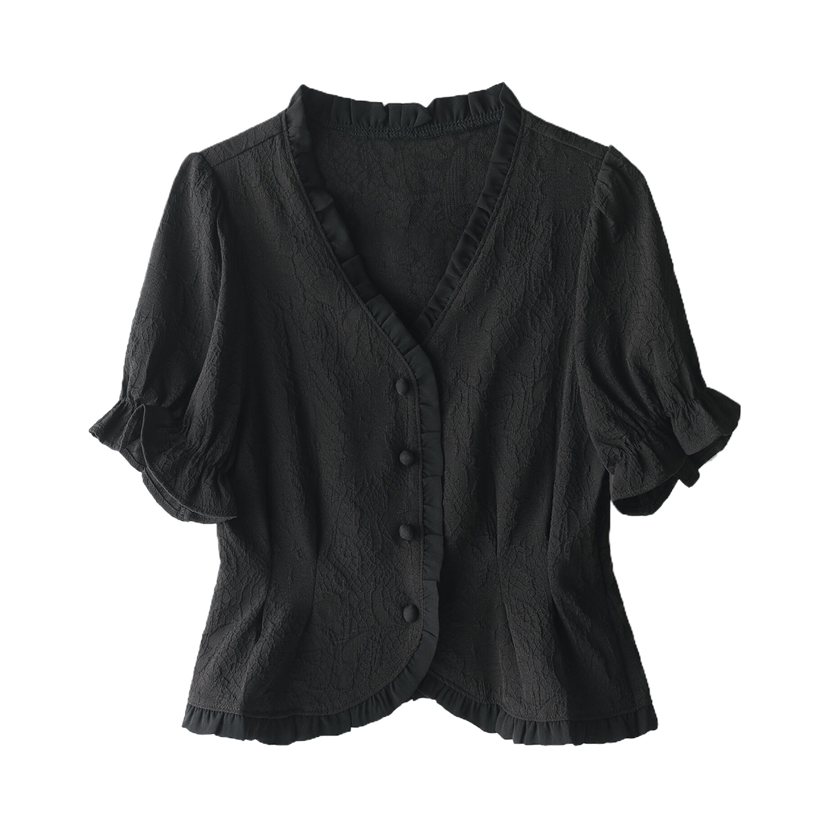 气质花边v领提花上衣女夏小众短袖 Smen诗萌法式 小衫 商场同款