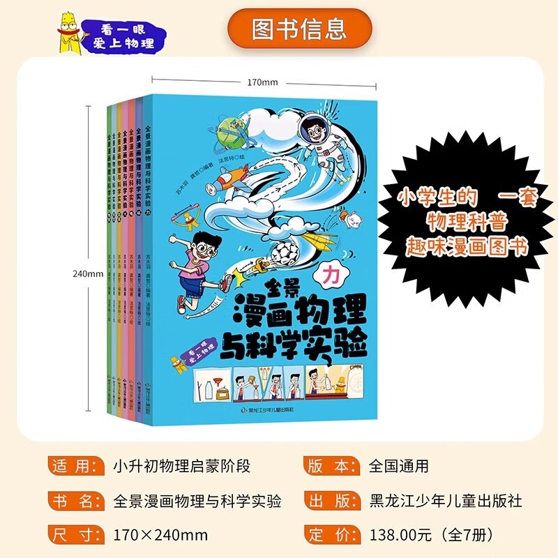 全7册 儿童趣味物理启蒙科普知识百科全书声音光物质电磁能量自然科学漫画书全景漫画物理与科学实验漫画 全景漫画物理与科学实验