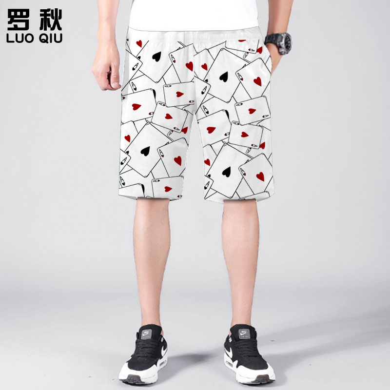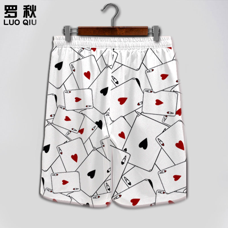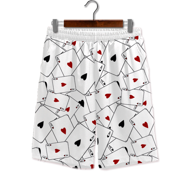 子沙滩中裤 5五分裤 男士 扑克牌黑桃红桃方块梅花A港风满印速干短裤