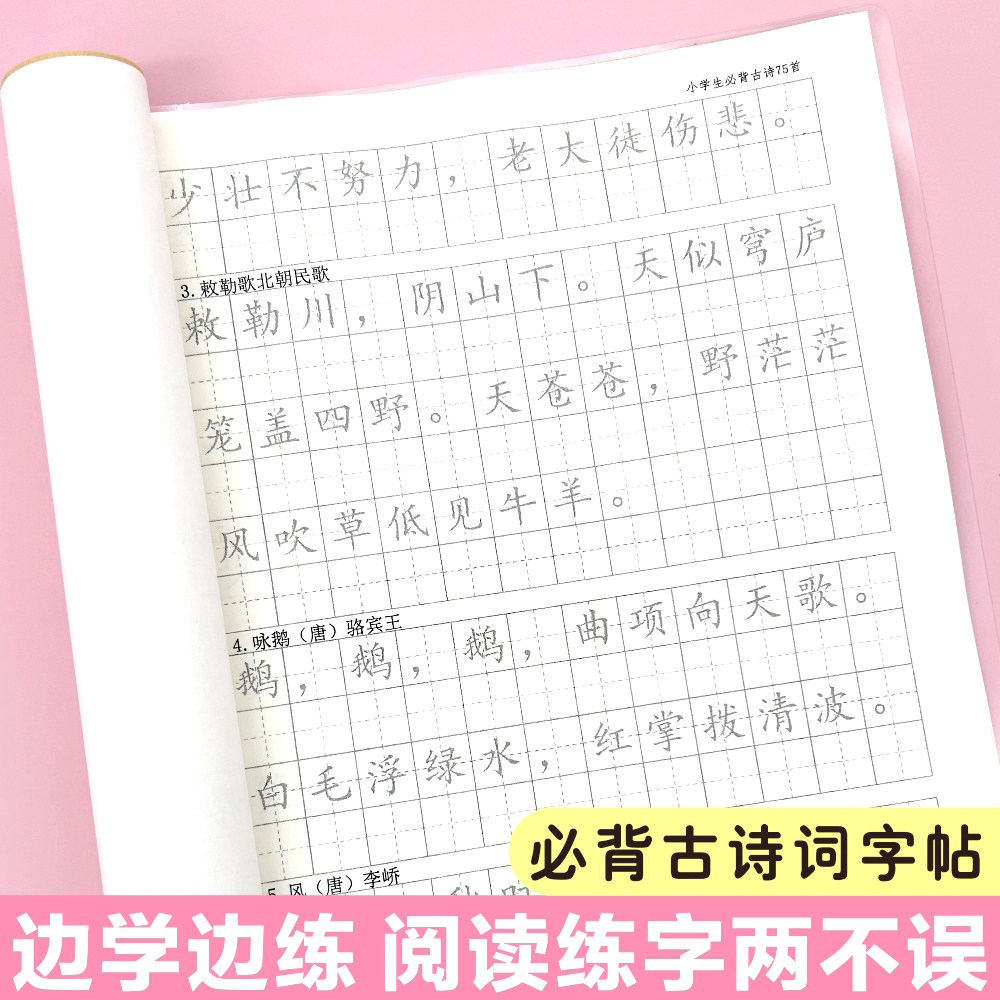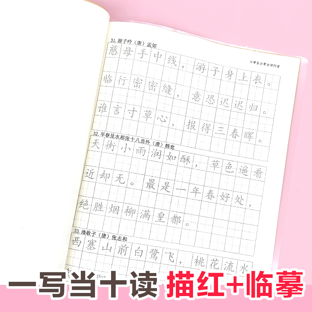 小学一至六年级必背唐诗古诗75首描红练字帖唐诗宋词田字格人教版