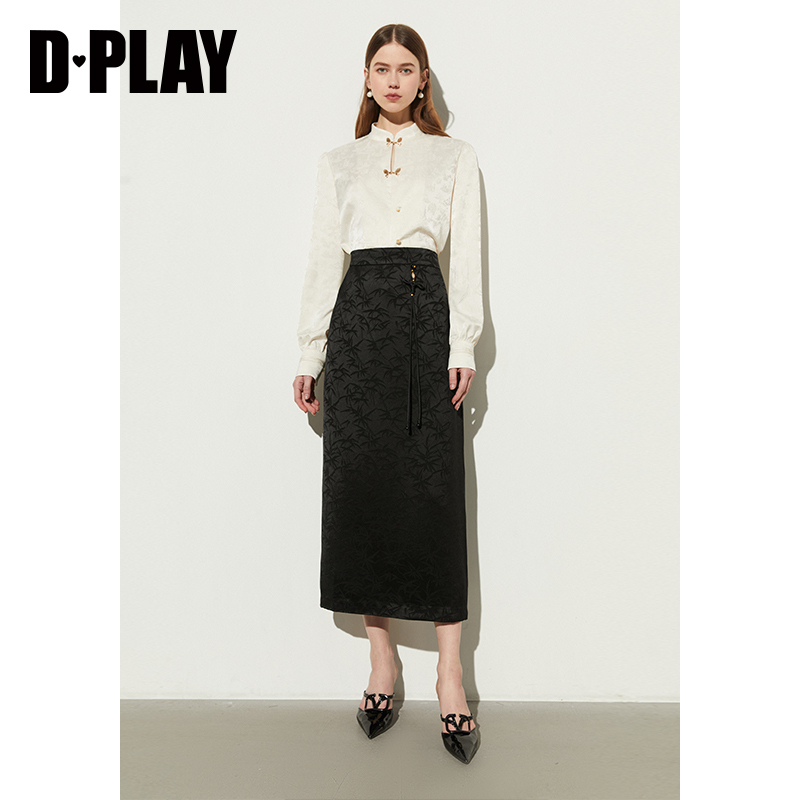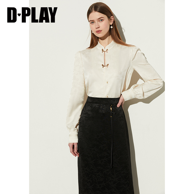 盘扣流行国风女士上衣长袖 DPLAY2025春季 女新中式 白色衬衫 新款
