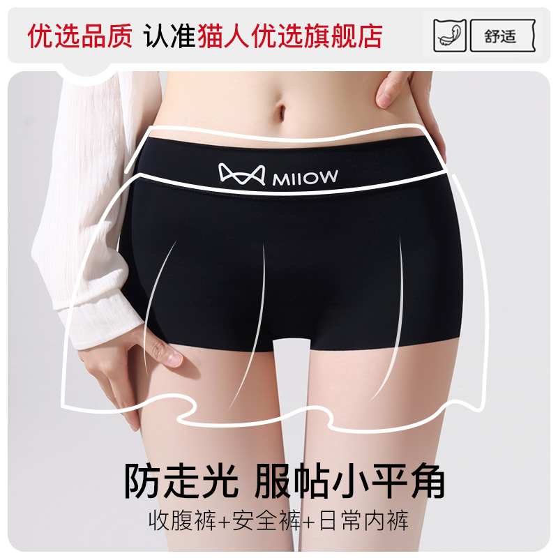 二合一女平角纯棉抗菌裆防走光女无痕四角短裤 猫人冰丝安全裤 内裤