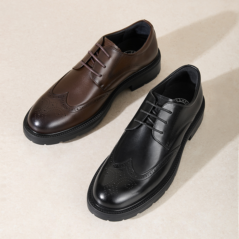 2025秋季 皮鞋 新款 商务正装 结婚牛皮德比英伦风布洛克男士 骆驼男鞋