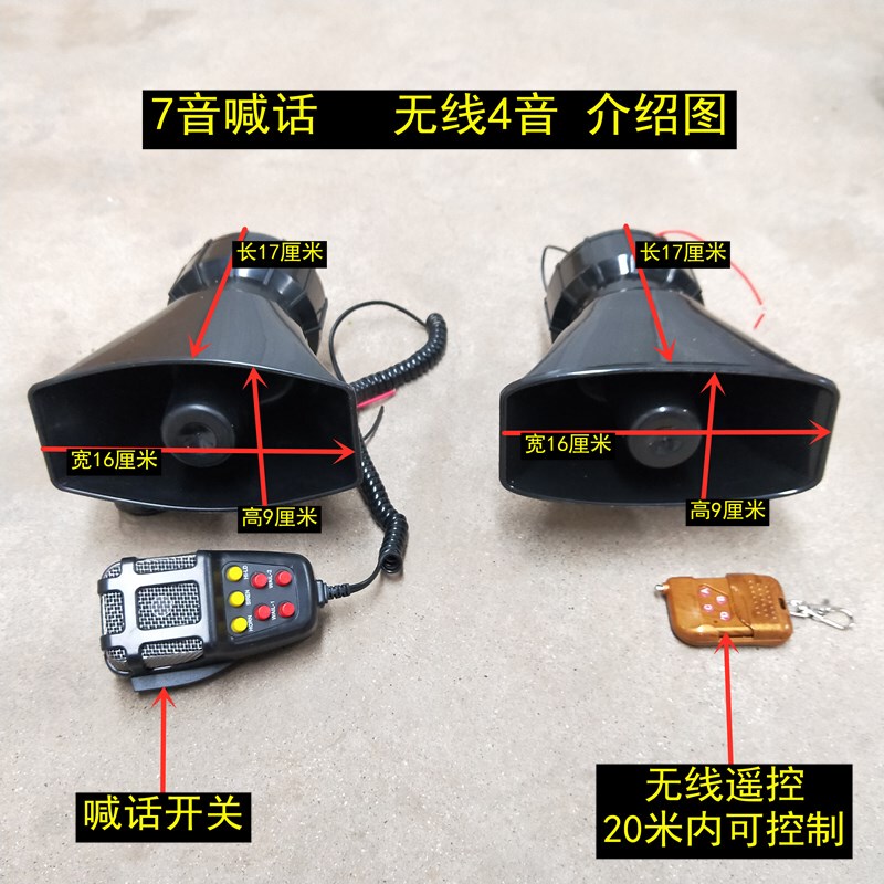 汽车摩托车12V警示音响鸣笛三音警车超响警迪防水多音喊话喇叭