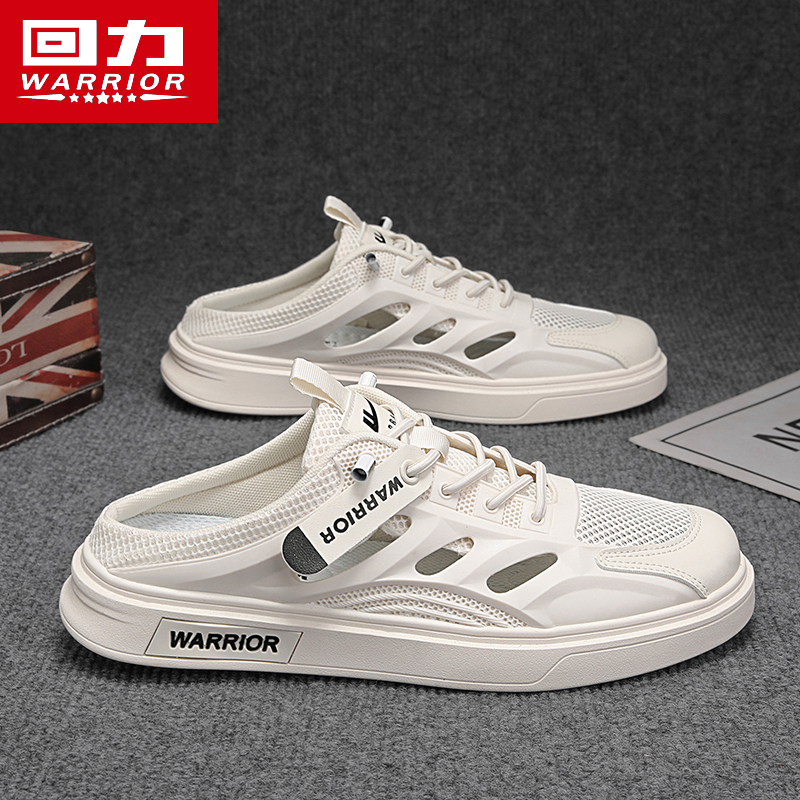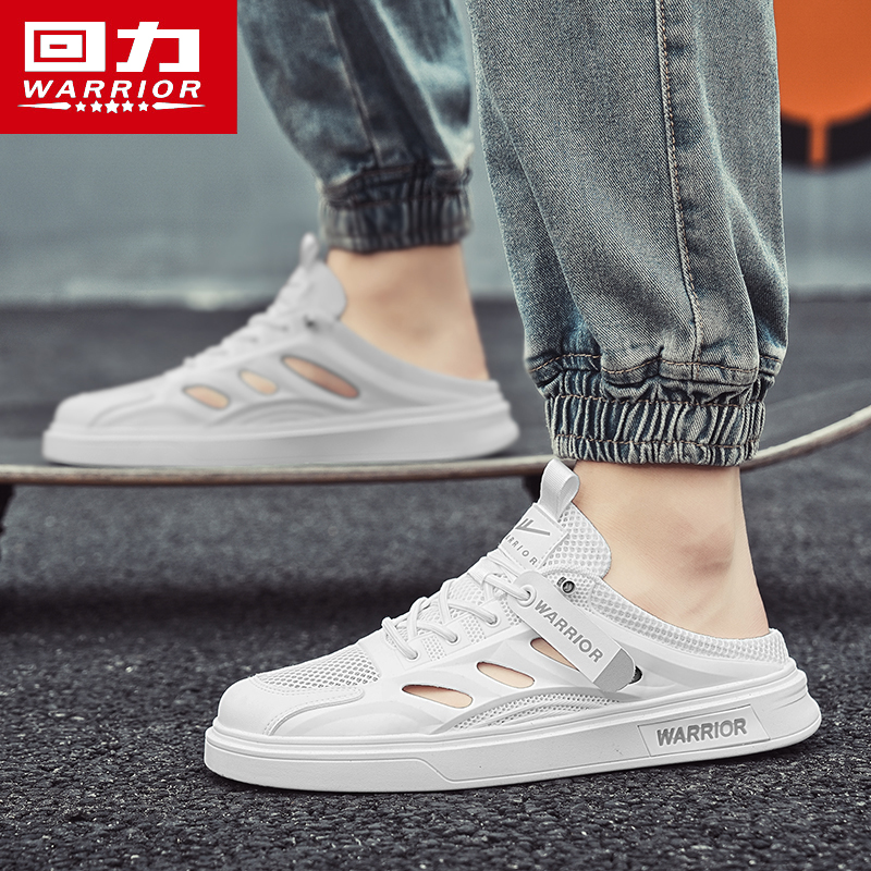 外穿防滑休闲沙滩凉鞋 透气防滑一脚蹬懒人包头半拖鞋 夏季 回力男鞋