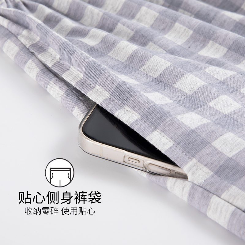 2025新款 格子全棉套装 夏季 小熊长裤 家居服 纯棉短袖 卡之恋睡衣女款