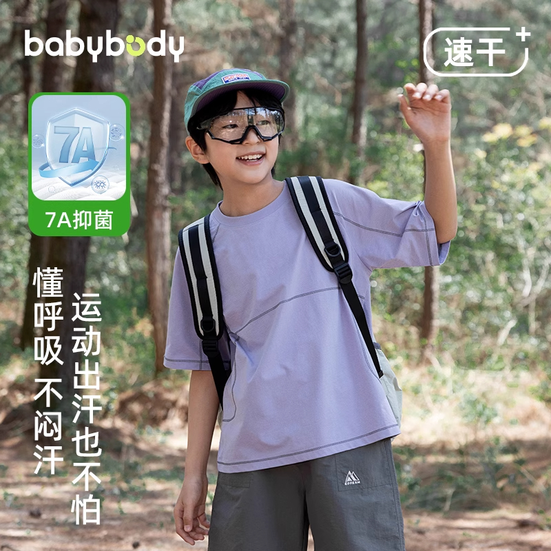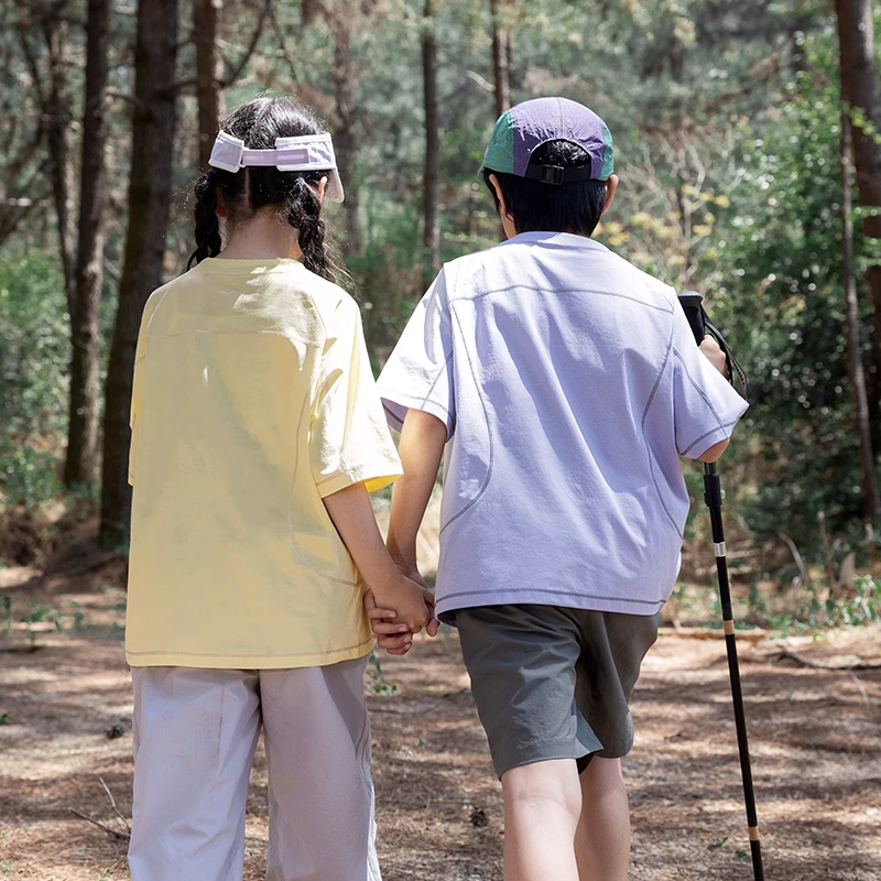 拉夏贝尔男童短袖 女大童秋透气运动轻薄户外凉感 速干t恤2025新款
