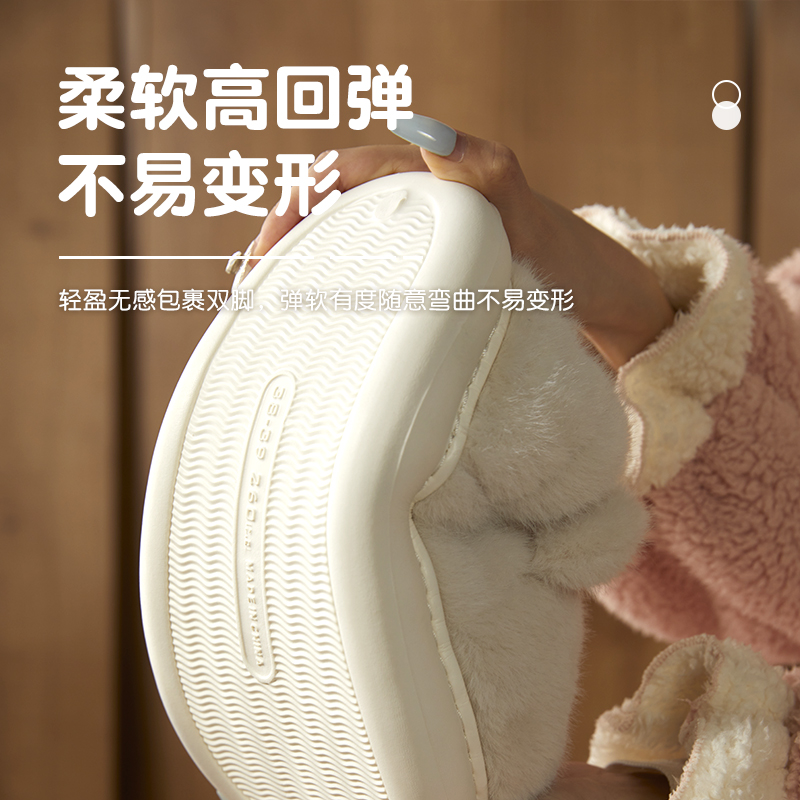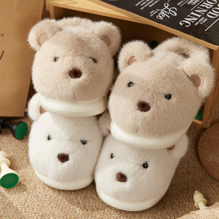 女 室内家居加绒保暖可爱萌趣厚底防滑情侣棉鞋 包跟棉拖鞋 女秋冬季