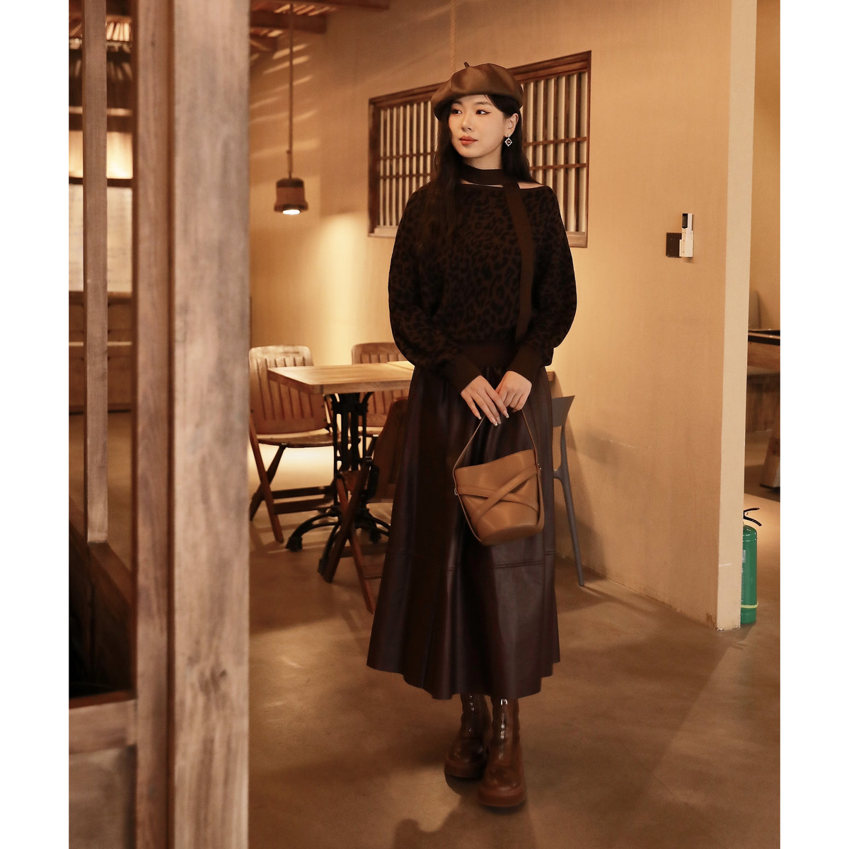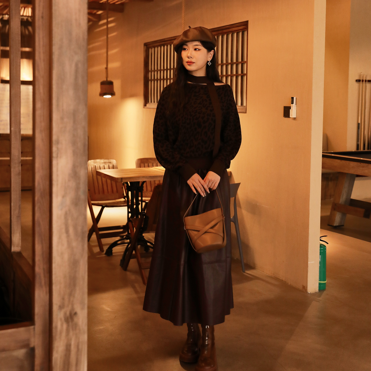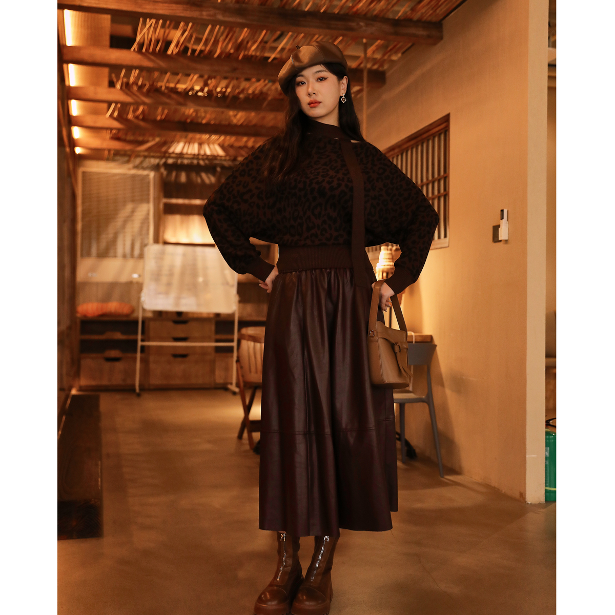 紫涵拼接花苞型半身裙女秋季 高腰显瘦休闲通勤百搭宽松中长裙 新款