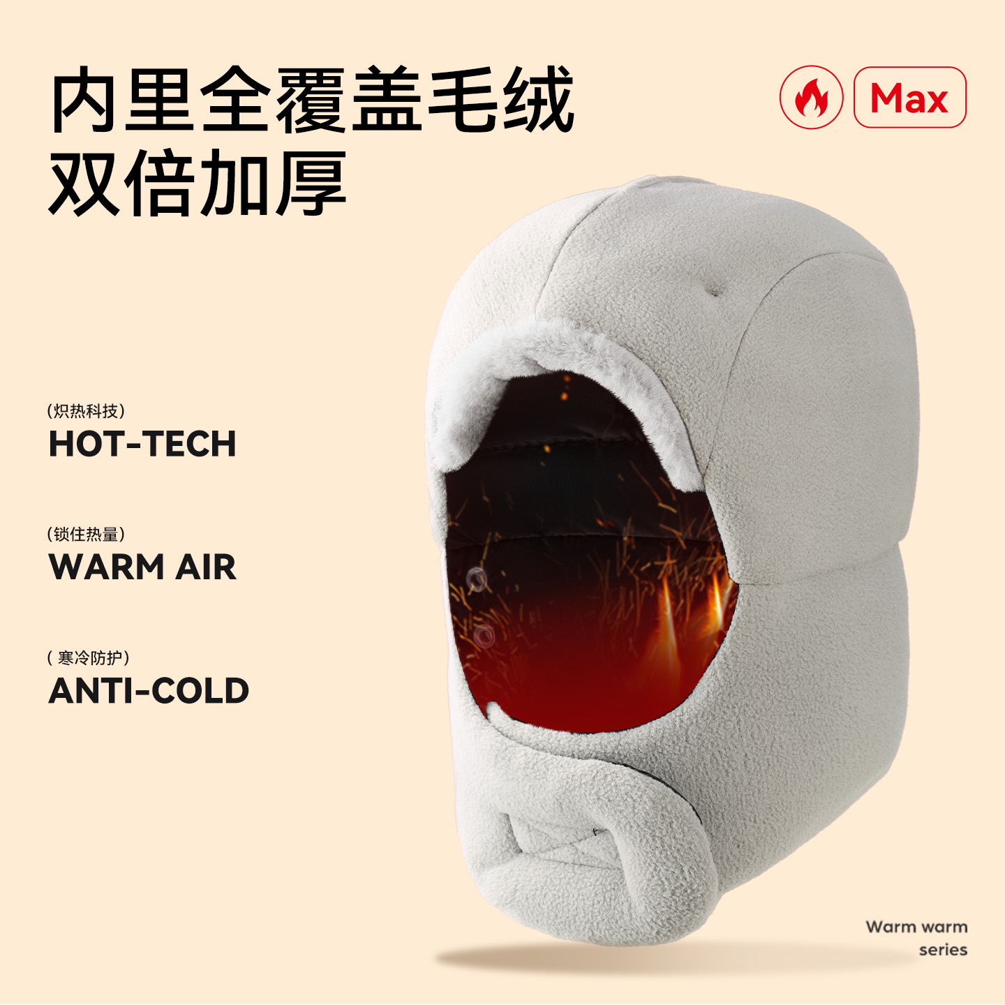 匹克帽子男新款 骑行防风保暖护耳套头棉帽加绒加厚防寒雷锋帽 冬季