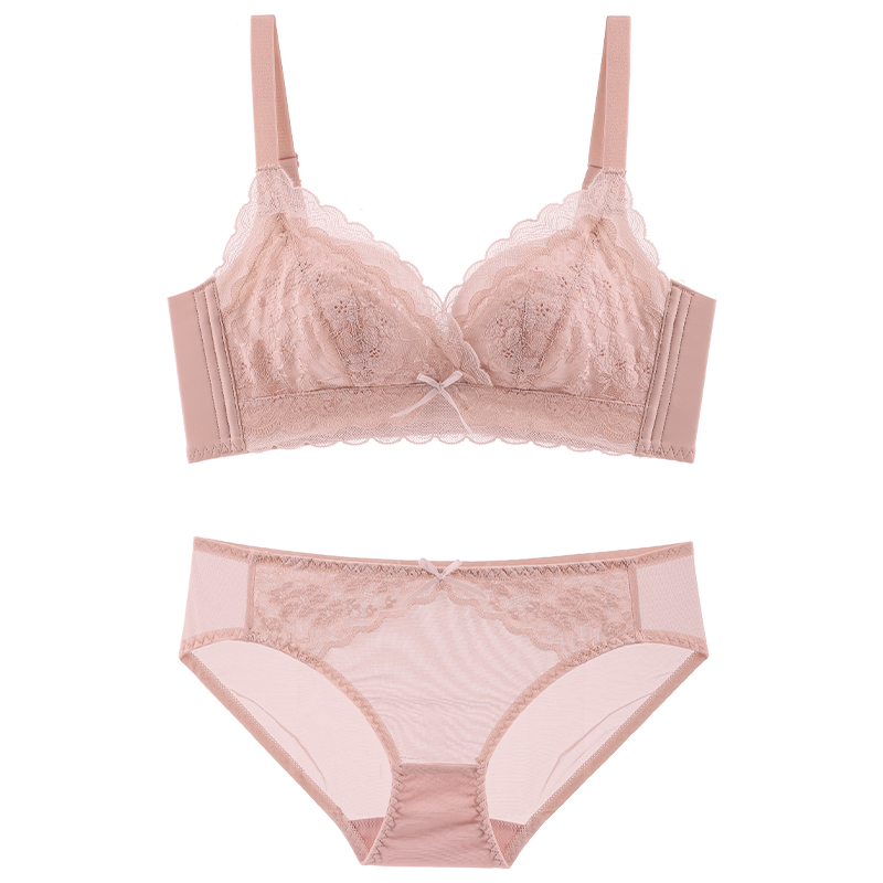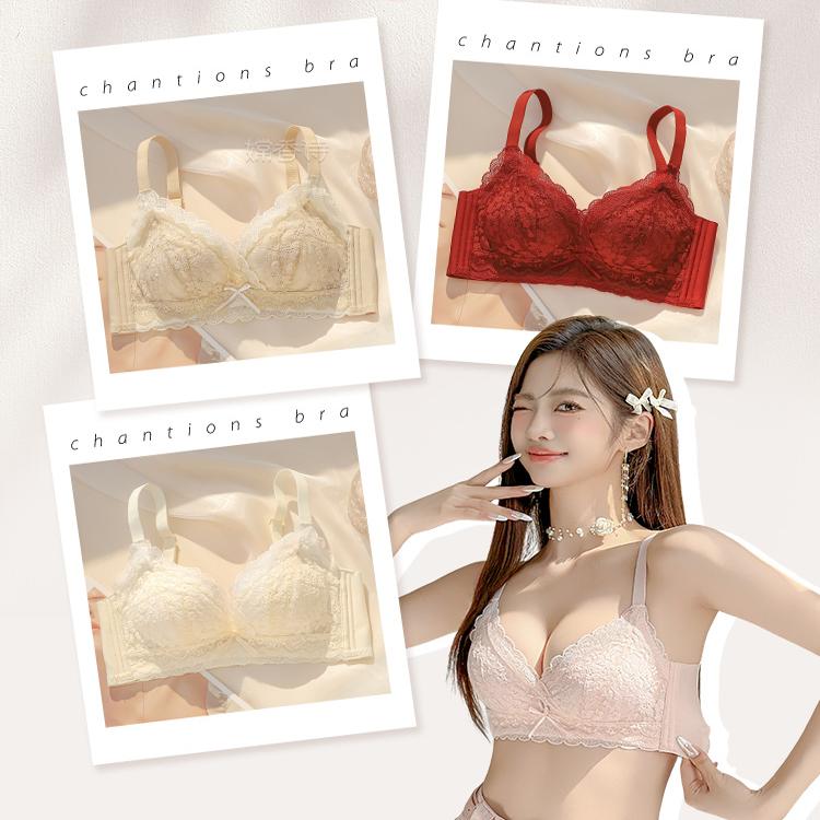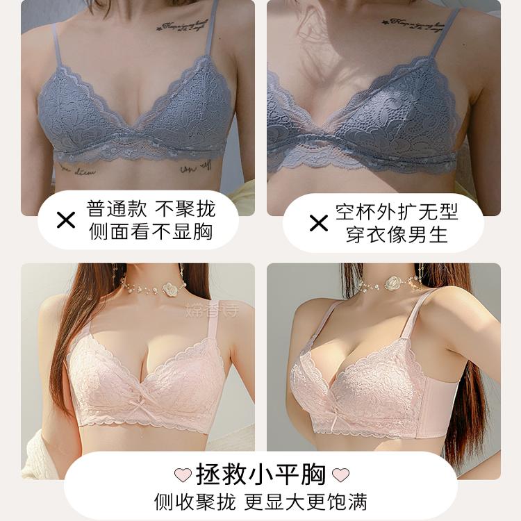 好奇蜜斯前扣内衣女聚拢小胸性感蕾丝薄文胸罩套装 美背纯欲夏法式