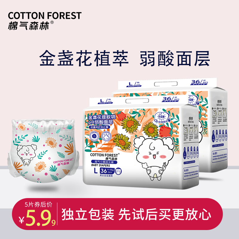 大码 男女宝宝纸尿裤 透气 L尿不湿试用装 棉气森林金盏花婴儿拉拉裤