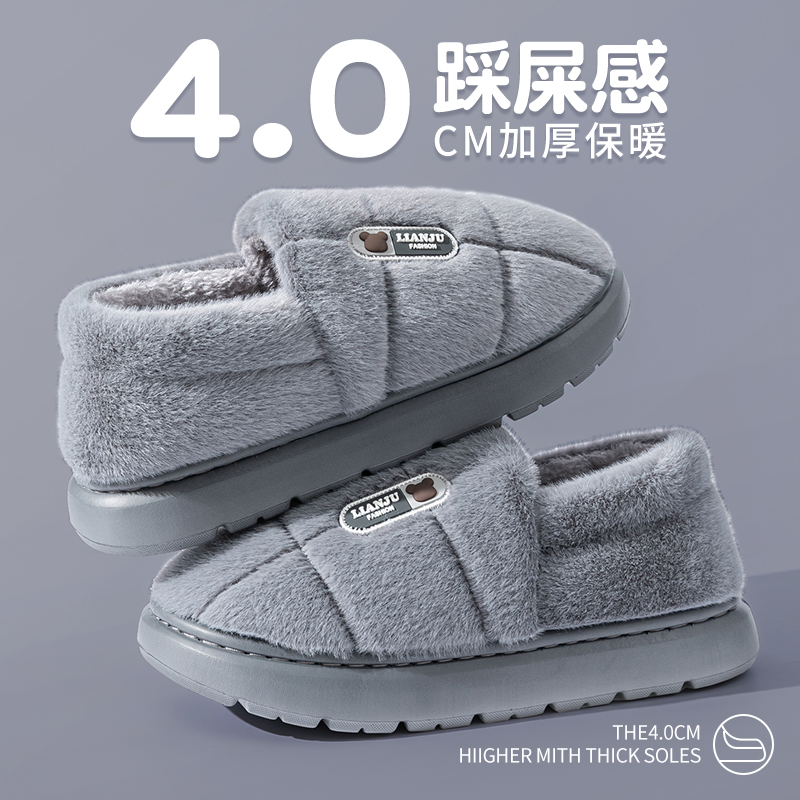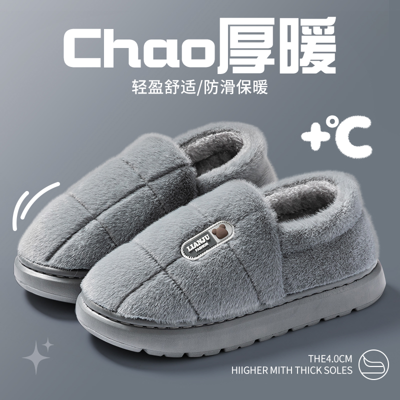 大码 外穿防滑厚底毛绒保暖棉鞋 包跟棉拖鞋 2025新款 男加绒 冬季 男士