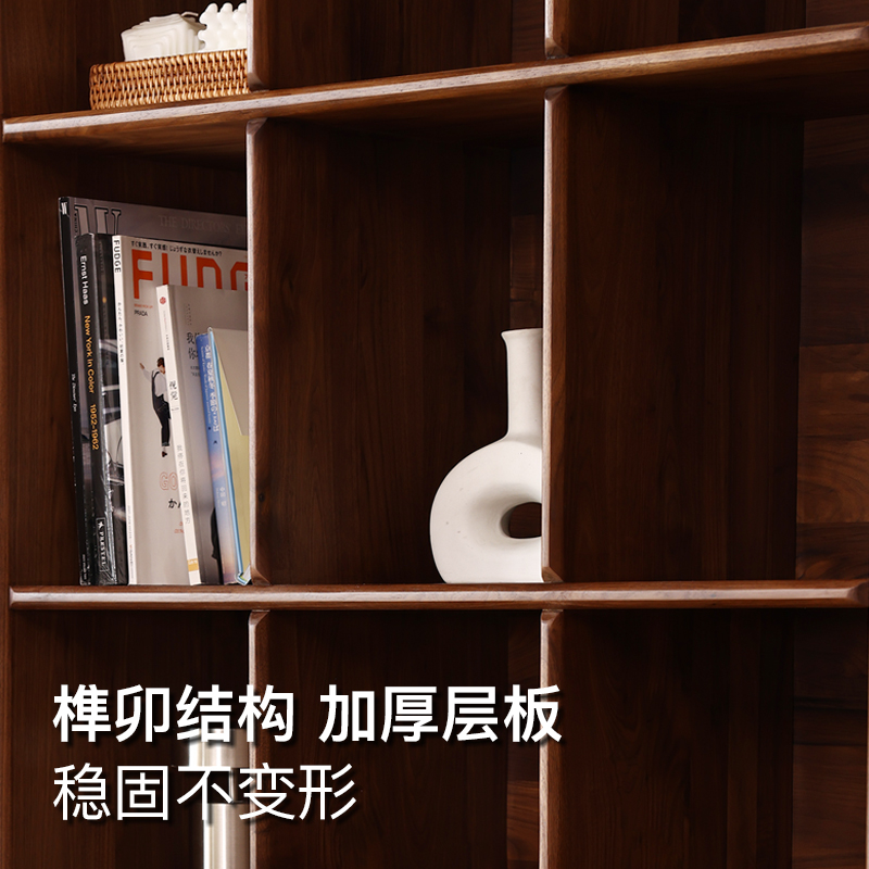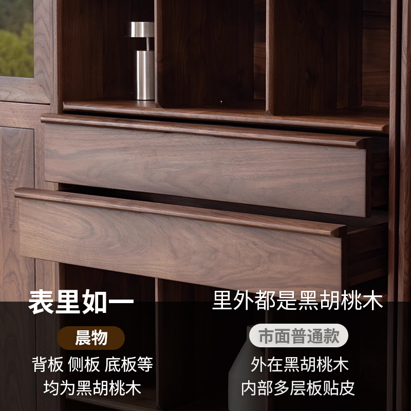 北美黑胡桃木全实木书柜带玻璃门简约现代家用落地储物柜组合书柜