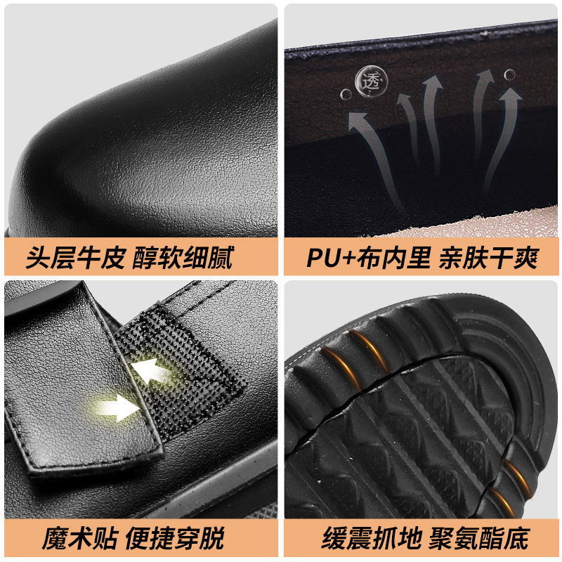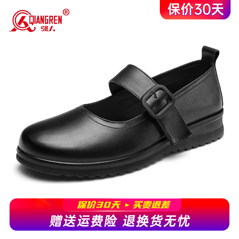 浅口单鞋 女中老年妈妈鞋 黑色工装 真皮舒适休闲皮鞋 鞋 强人3515女鞋