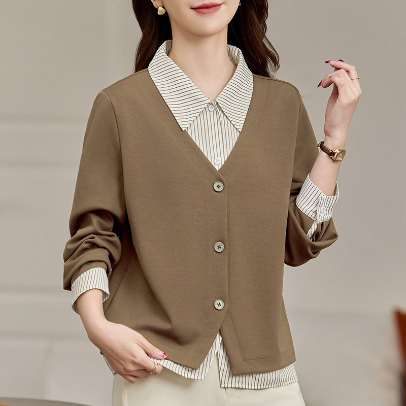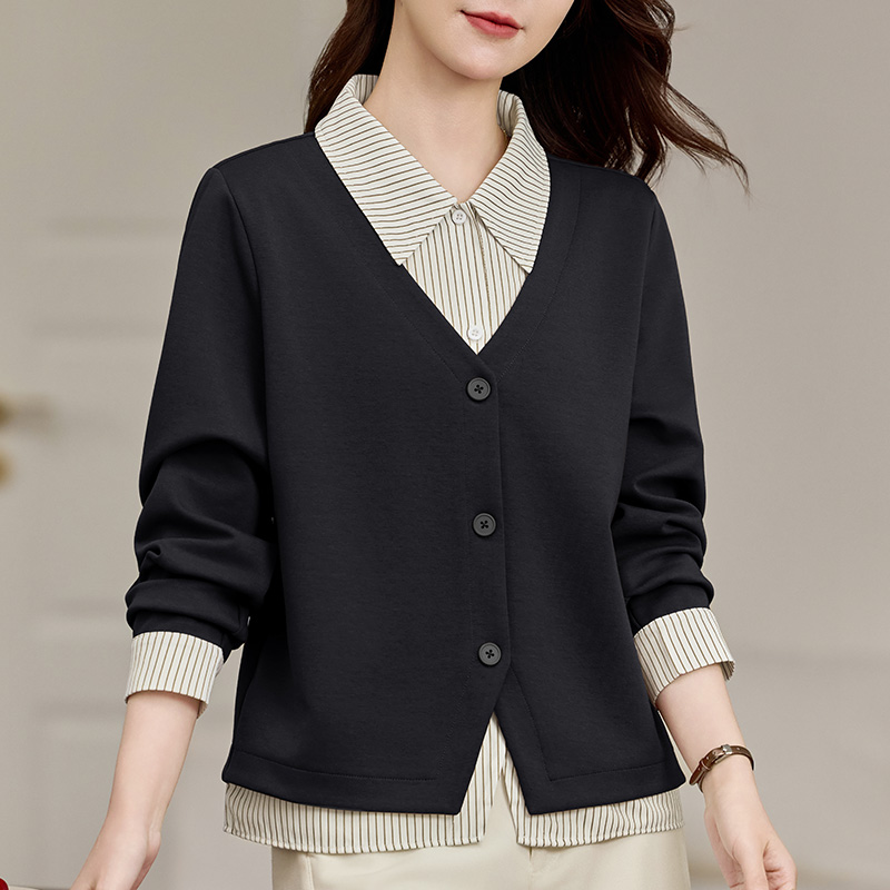 爆款 假两件开衫 春季 2025新款 宽松polo领条纹上衣 卫衣外套女春秋款