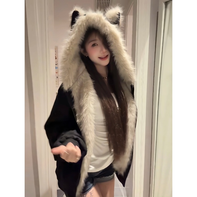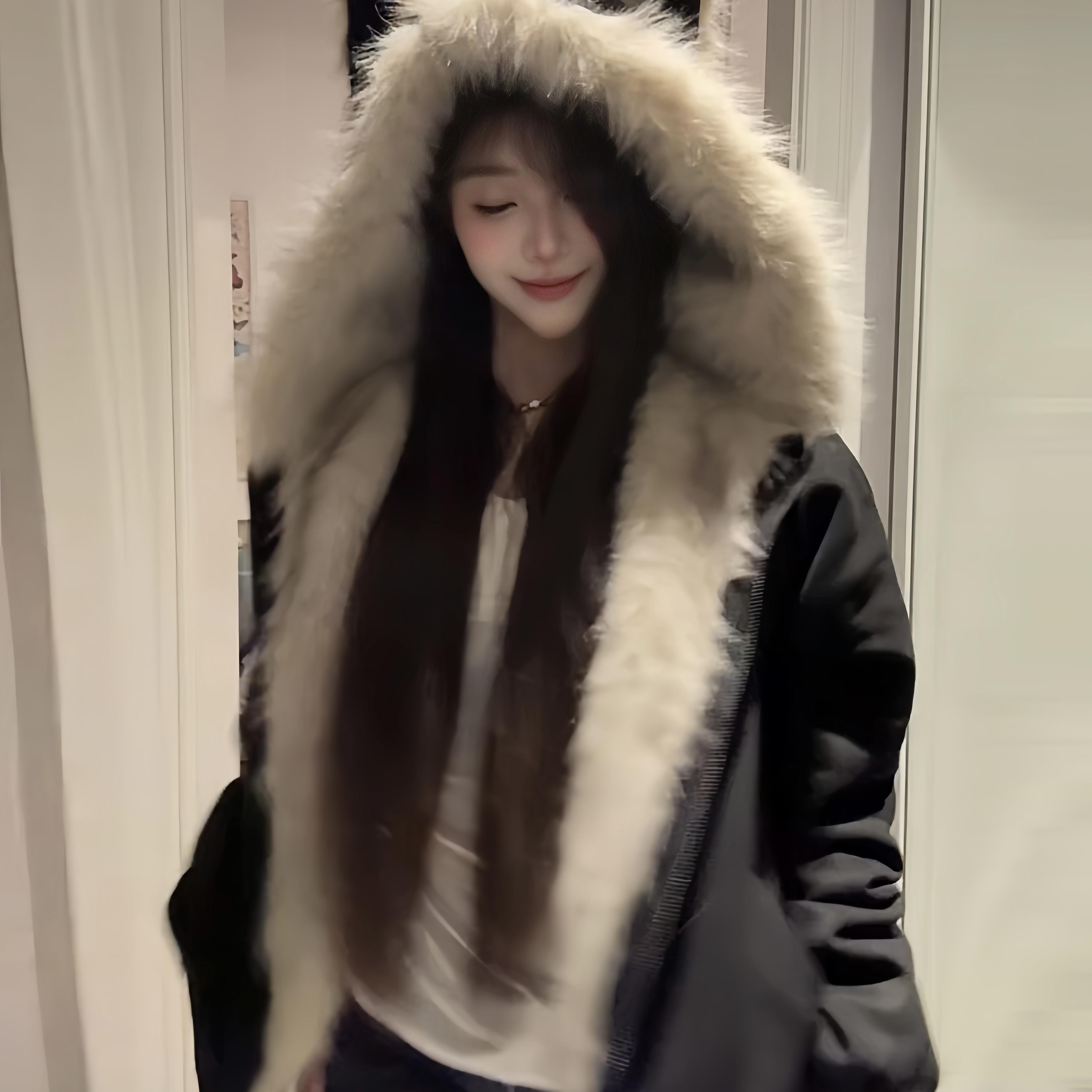 五只白鹅2025秋冬男女加绒加厚保暖可拆卸衣领羊毛防风外套棉服