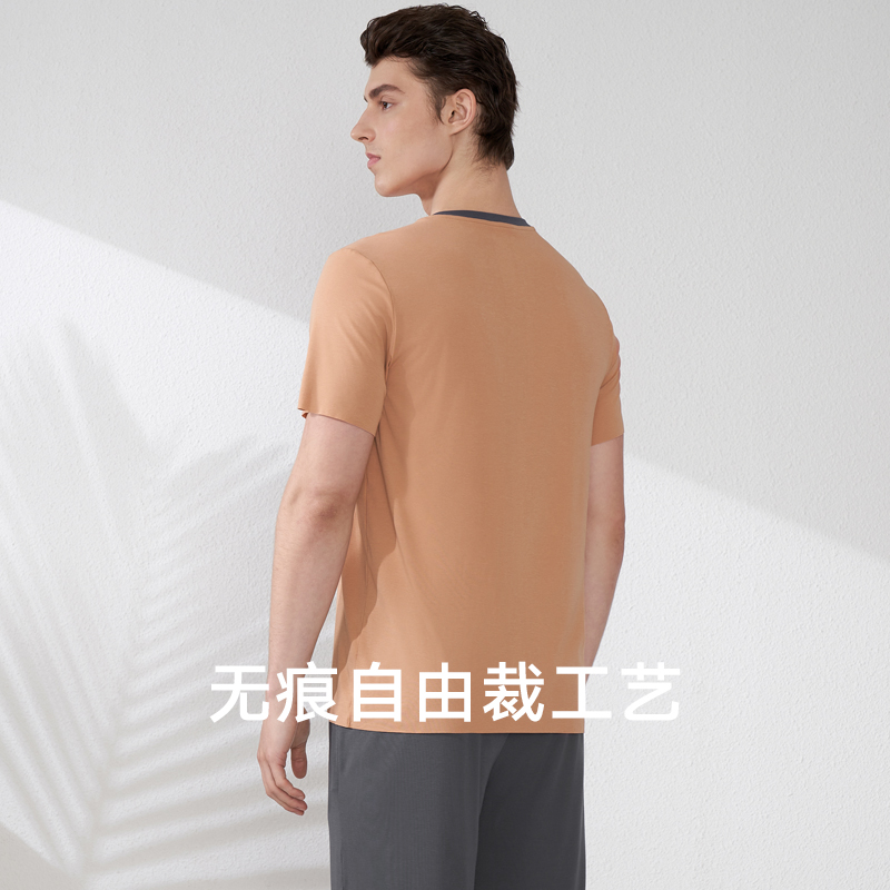 夏季 舒适家居服起居服青年睡衣睡裤 圆领短袖 套装 长裤 曼妮芬男士