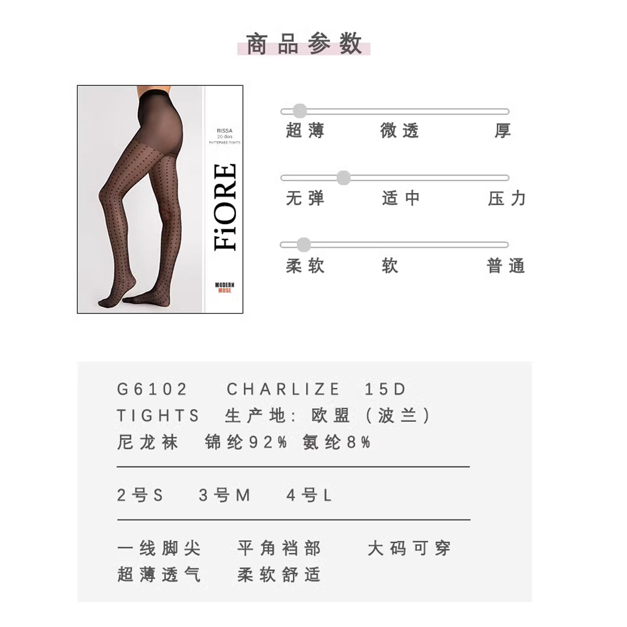 Fiore袜子奶白色波点超薄连裤 加长进口15D 袜春秋透气大码